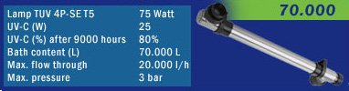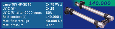 • Bis zu 35% höhere UV-C-Leistung durch Reflexion • Elektrolytisch polierte Edelstahl-Auskleidung, so dass sich kaum Schmutz absetzen kann • UV-C-Lampe von Philips mit 9.000 Stunden Brenndauer • Einfache Installation und Wartung • PVC-Universalanschlüsse werden mitgeliefert • 2 Jahre Garantie auf Herstellungsfehler