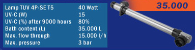 einen 35% höheren UV-C-Ertrag. Das Gerät Spa & Pool UV-C desinfiziert das Wasser auf effiziente und sichere Weise und sorgt stets für eine hervorragende Wasser-qualität. Sie haben die Wahl!