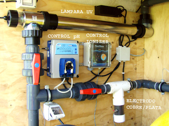 ![]() Caja de control del sistema ionización, electrodo cobr plata, y sistema automatico de pH. |