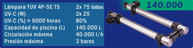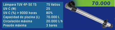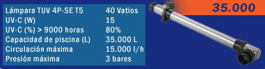 Gracias al Spa & Pool UV-C se desinfectará el agua de su piscina de una manera eficaz y segura, conservando el agua una calidad excelente. ¡Escoja usted! Desinfección Ultravioleta La radiación ultravioleta (UV) es un proceso probado para desinfectar el agua, el aire o las superficies sólidas que están microbiologicamente contaminadas. Los efectos de UV como se ha documentado un agente de la desinfección puesto que los primeros días de la investigación en biología y la física de ondas de luz. UV es muy eficaz La agencia de protección del medio ambiente de EE.UU. reconoce el uso de UV como tecnología probada, viable; "La radiación (UV) ultravioleta se ha encontrado para ser un desinfectante eficaz. La simplicidad de la instalación, la comodidad de uso y mantenimiento, y los bajos costos desinfección química, hace del UV una opción útil de la tecnología de la desinfección de los sistemas pequeños." Lista de la tecnología de la conformidad del sistema pequeño para Reglas Tratamiento superficial de aguas, ESTADOS UNIDOS EPA, Agosto De 1997 y Tecnología de la desinfección de la luz ultravioleta en agua potable Usos - Una Descripción, ESTADOS UNIDOS EPA, 1996 |
