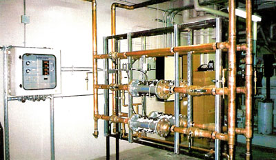 thwart the onset of legionnaire’s disease. It is noteworthy that, prior to the employment of the copper-silver ionization method, the majority of the 16 acute care hospitals participating in the study (75%) had tried to disinfect their water by various other techniques, including superheat and flush, ultraviolet light and hyperchlorination. The study was just one phase of a larger assessment undertaken to guide health care institutions in their selection of the most efficient and effective long-term mode of water disinfection. Installing Tarn-Pure™